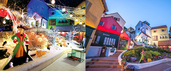 어린왕자를 컨셉으로 한 쁘띠프랑스는 한국안의 작은 프랑스 문화 마을로 ‘시크릿가든’, ‘별에서 온 그대’, ‘런닝맨’ 등 드라마 촬영지로도 유명하다.