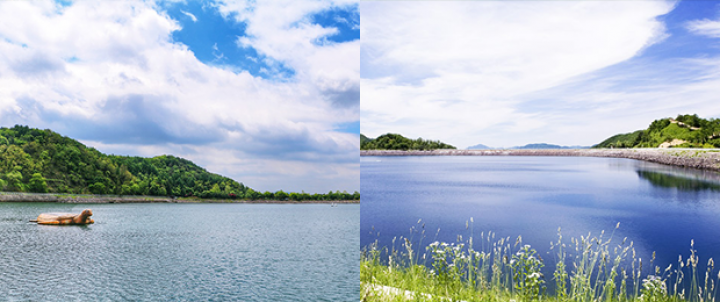박정희 대통령시대에 국내 최초로 건설된 양수식 발전소의 인공저수지로 호명산의 수려한 산세와 더불어 넓은 저수지는 백두산 천지를 연상시키는 아름다운 절경이다.