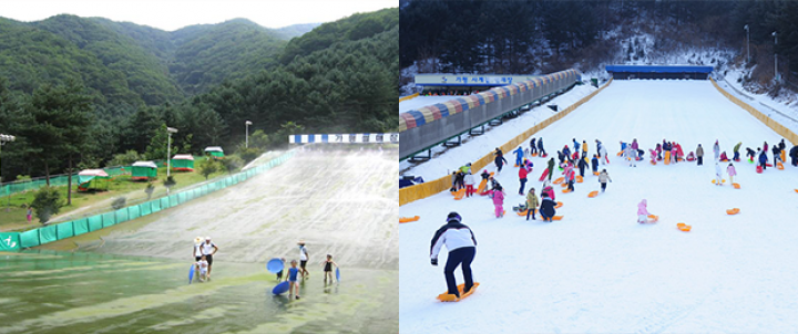 가평의 아름다운 자연과 더불어 조화를 이루며 생긴 가평 썰매장은 여름에는 시원한 물썰매를 즐길 수 있고,