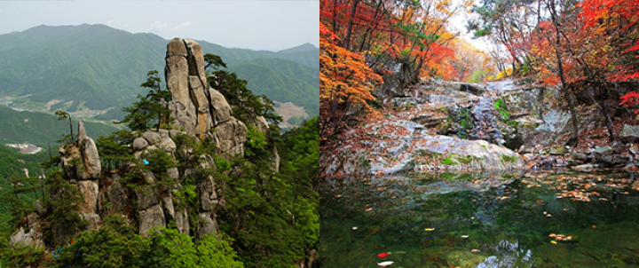 해발 935m의 운악산은 이름 그대로 구름을 뚫은 봉과같이 기암괴석이 절경을 이루고 있으며